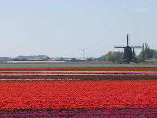 Met zulk helder en zonnig weer is eigenlijk elke foto raak, langs De Vooroever en ook in Enkhuizen waar de visboer wel open was voor een heerlijke bak kibbeling. Dan weer langs de dijk richting Hoorn. Een jongeman op de racefiets passeerde mij op het fietspad net voor de stoplichten en ging er als een haas vandoor ook richting de dijk,” jacht voor fikkie” was mijn eerste gedachte. Inderdaad toen de stukken langs de dijk het toelieten om met wat meer gang de lichte bochten te nemen kwam ik snel dichterbij en hij af en toe maar omkijken. Leuk is dat, hij kon het ondanks z’n jeugd niet winnen van de Quest al reed hij ook tegen de 40 km, even er achter blijven en dan “vol gas” er overheen, hij probeerde nog een paar honderd meter te volgen en toen zag ik hem als een steen wegvallen in de verte, dan voel je jezelf weer "jong". Op een bepaald moment zag ik een kano op het Markermeer, flink inzoomen maar ik kon niet zien of het Ed de Boer was uit Bovenkarspel, volgende keer beter. Al dwalende kwam ik uiteindelijk toch weer redelijk richting Middenmeer om via de Lage Hoek nog even een serie kleurige tulpenvelden vast te leggen met de molen op de achtergrond en dat alles was goed voor 107 km door een prachtig stuk Nederland.